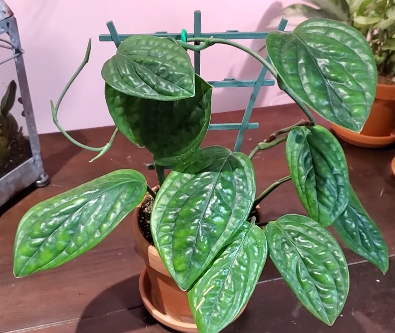 • Suporte: À medida que a planta cresce, pode ser necessário fornecer um suporte ou treliça para ajudá-la a se manter ereta.