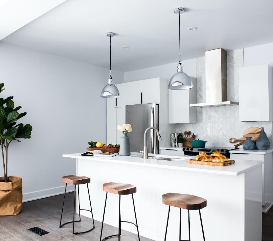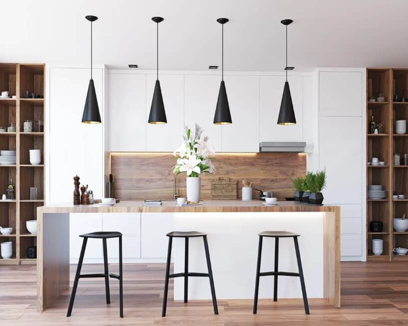 A iluminação desempenha um papel crucial na criação de uma cozinha acolhedora. Opte por luminárias pendentes elegantes sobre a ilha ou bancada. Use espelhos para refletir a luz e criar uma atmosfera mais luminosa e espaçosa.